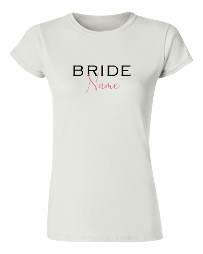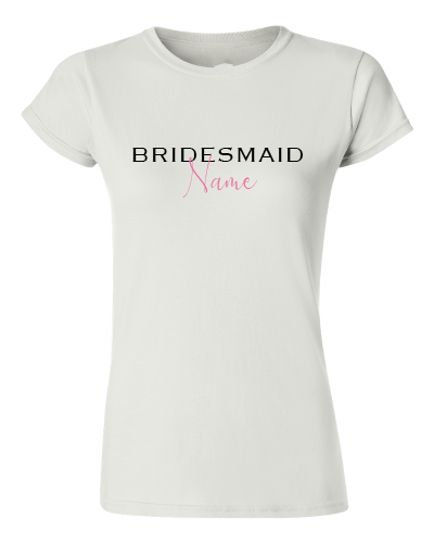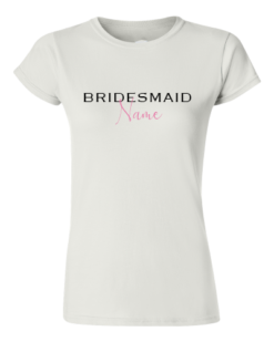 Choose from different design styles of bridal party teees (select colours; sizes and quantities) for your bridal party or design your own (Select a blank Tee & START DESIGN).   Add the names required @ Checkout in the Order notes.