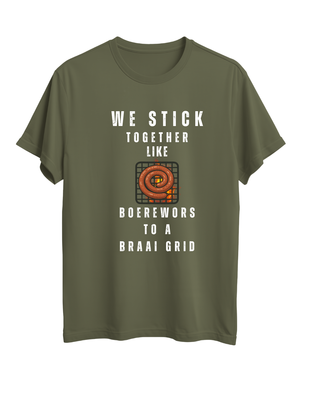 - Print Front = We Stick Together T-shirt like Boerewors to the Braai Grid